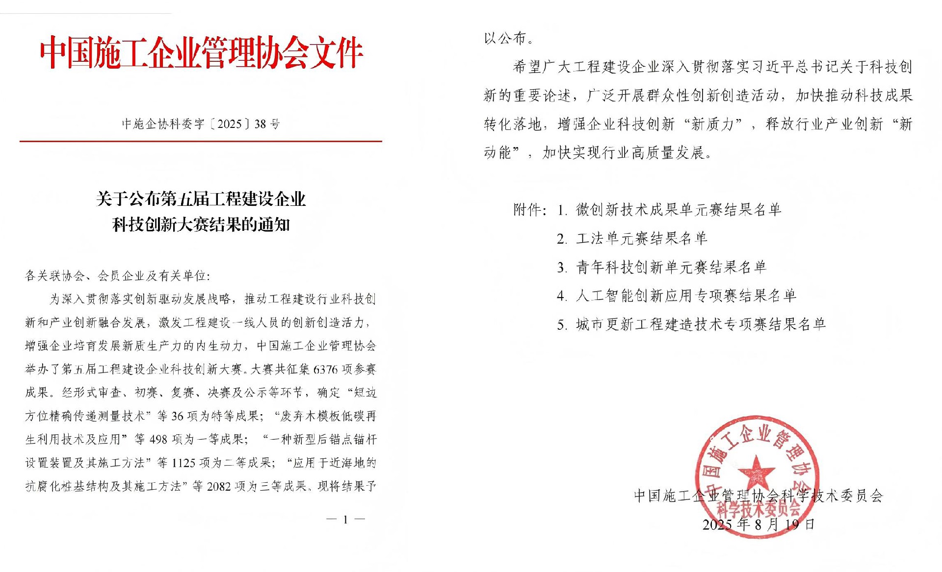 • 2025-08-27 集團在第五屆全國工程建設(shè)企業(yè)科技創(chuàng)新大賽中斬···